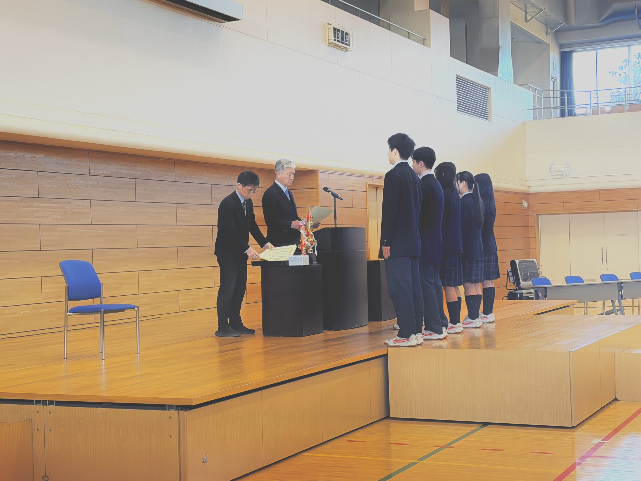 表彰式では、成績優秀賞や部活動に関する表彰が行われました。