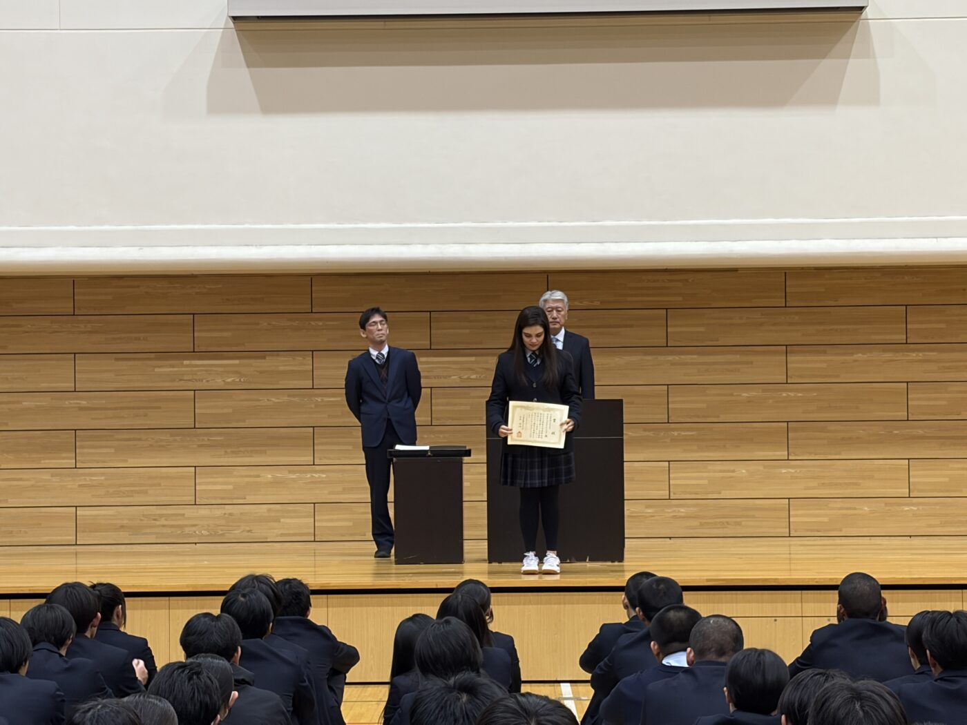 今回表彰されたのは、女子バスケットボール部、軽音楽部、そして国際関係の発表大会やスピーチコンテストで活躍した生徒たちです。